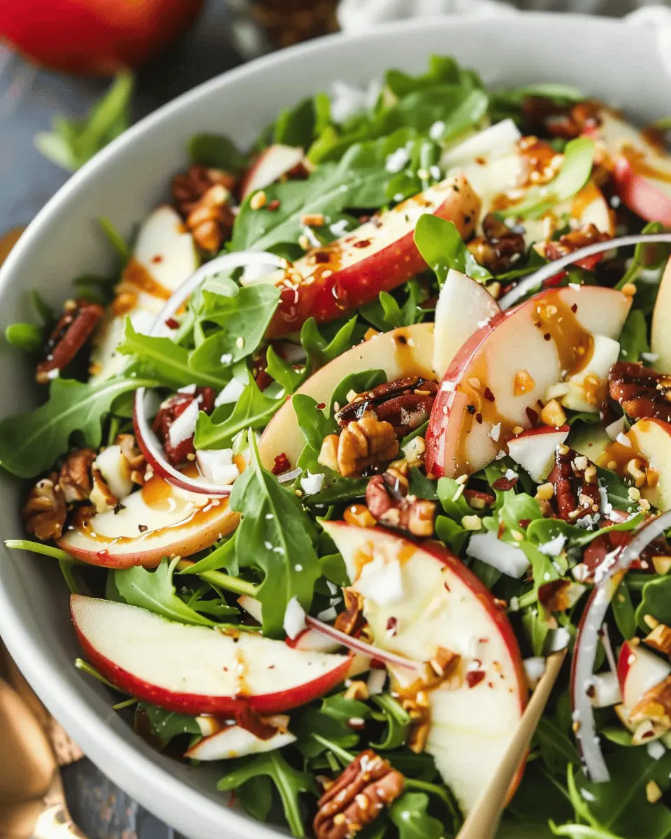 The Apple Arugula Salad isn’t just a feast for the eyes—it’s packed with goodness that supports health and wellness. This vibrant salad combines the peppery crunch of arugula with the sweetness of apples, delivering a refreshing experience while supporting your nutritional needs. It’s a delightful choice for anyone looking to incorporate more greens and fruits into their diet.