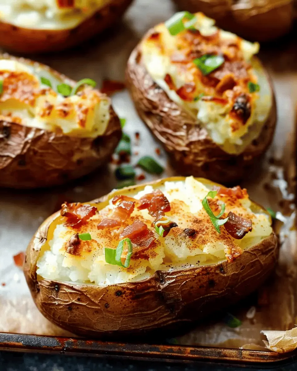 • Optional: For a little extra indulgence, return the topped potatoes to the oven for an additional 5-10 minutes. This helps the toppings melt and meld nicely with the potato.