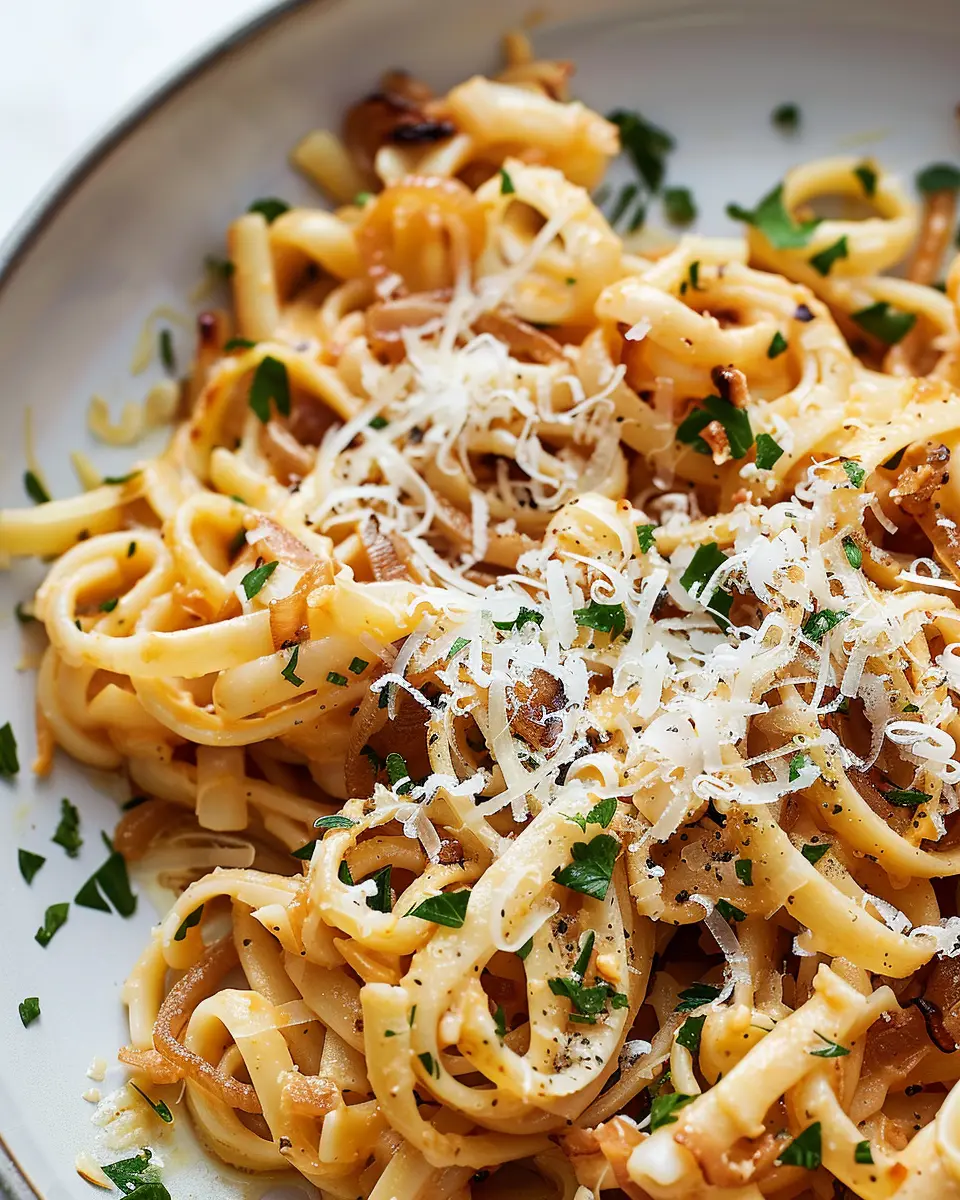 The star of this recipe is, of course, the caramelized onions. As they slowly cook down, they transform from pungent to sweet and buttery, creating a flavor explosion that elevates your pasta game. The process takes about 25-30 minutes, but trust me, the patience pays off when those onions turn golden brown and aromatic. You might even find yourself daydreaming about the dish while you cook, wondering how something so simple can taste gourmet!