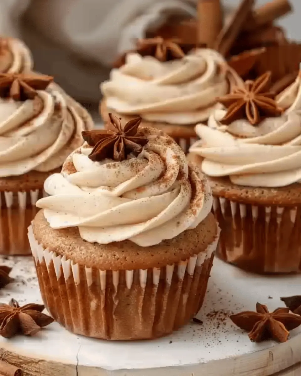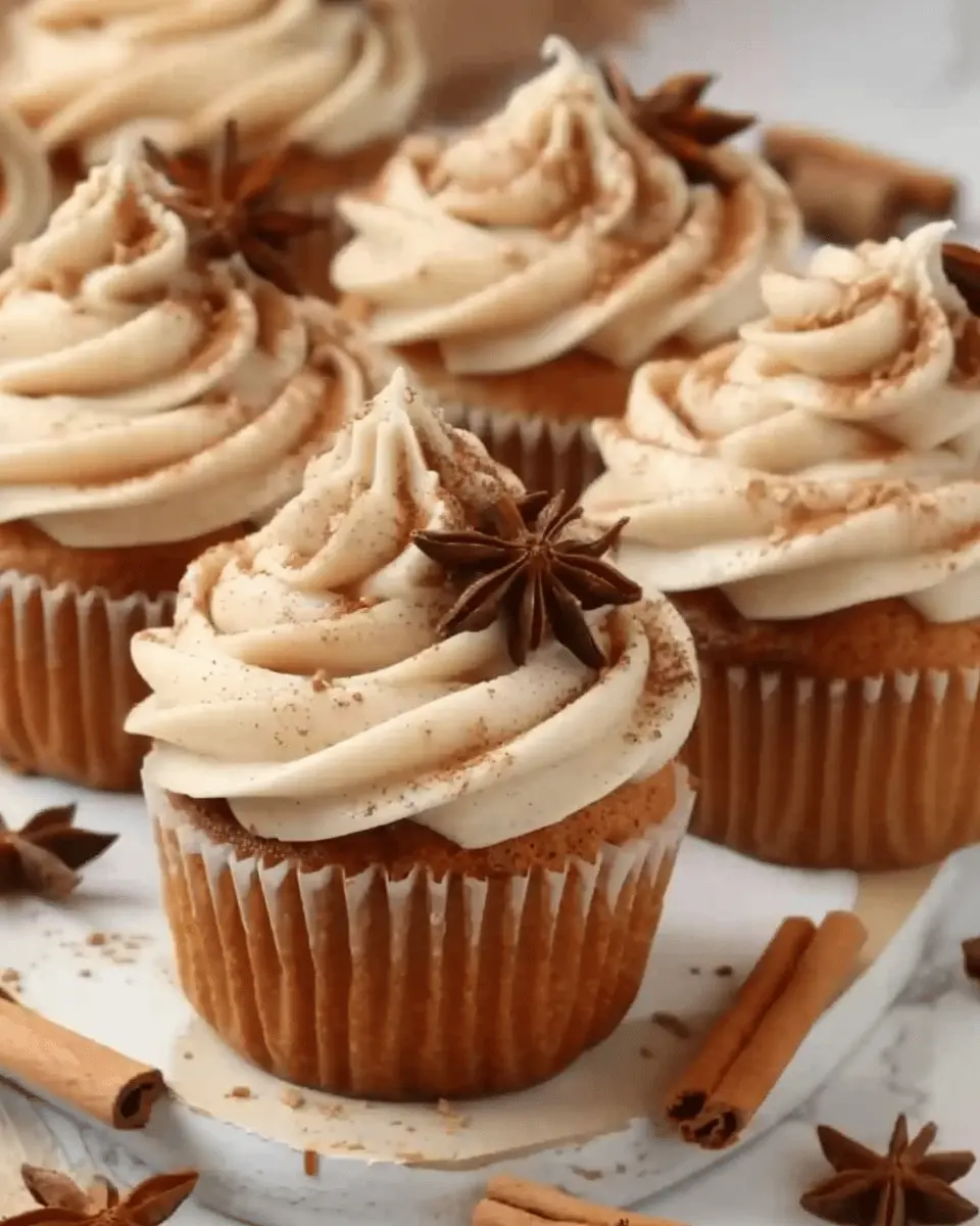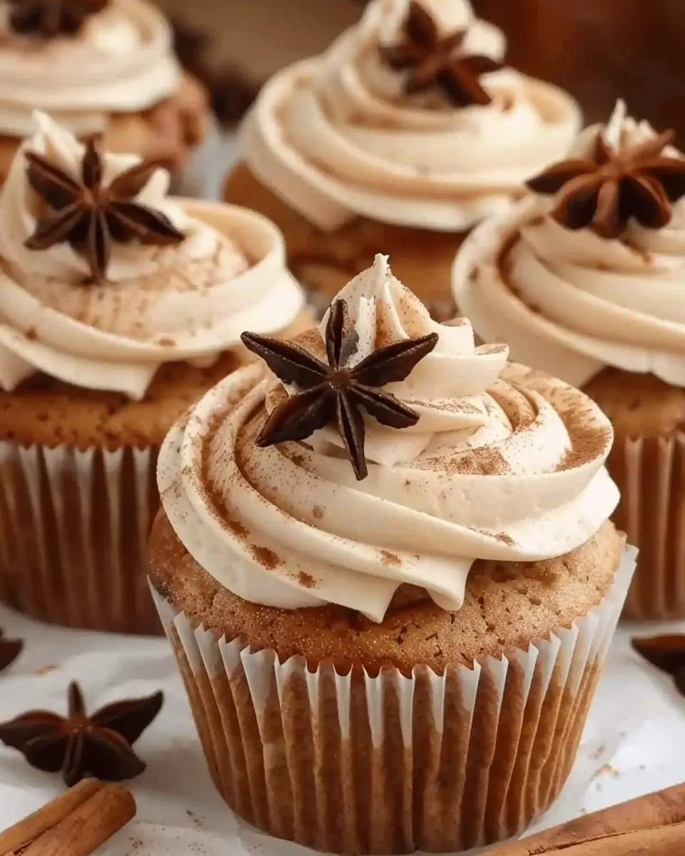 2. Garnish: For a finishing touch, sprinkle a bit of ground cinnamon or even some crushed ginger snaps on top. You can also place a small cinnamon stick or a star anise on each cupcake for a charming touch.