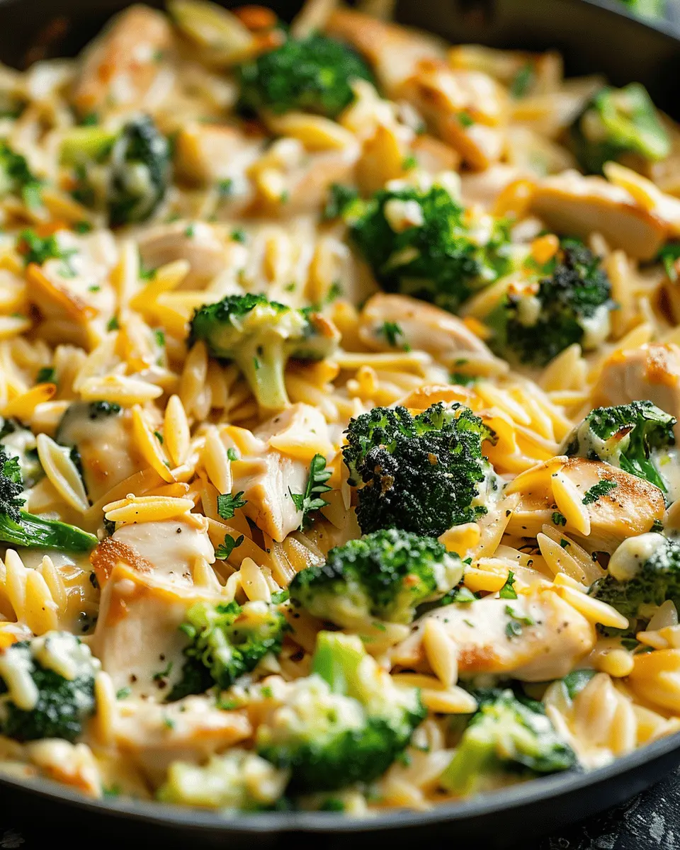 A delightful and comforting dish combining tender chicken, fresh broccoli, and creamy orzo, perfect for family dinners.