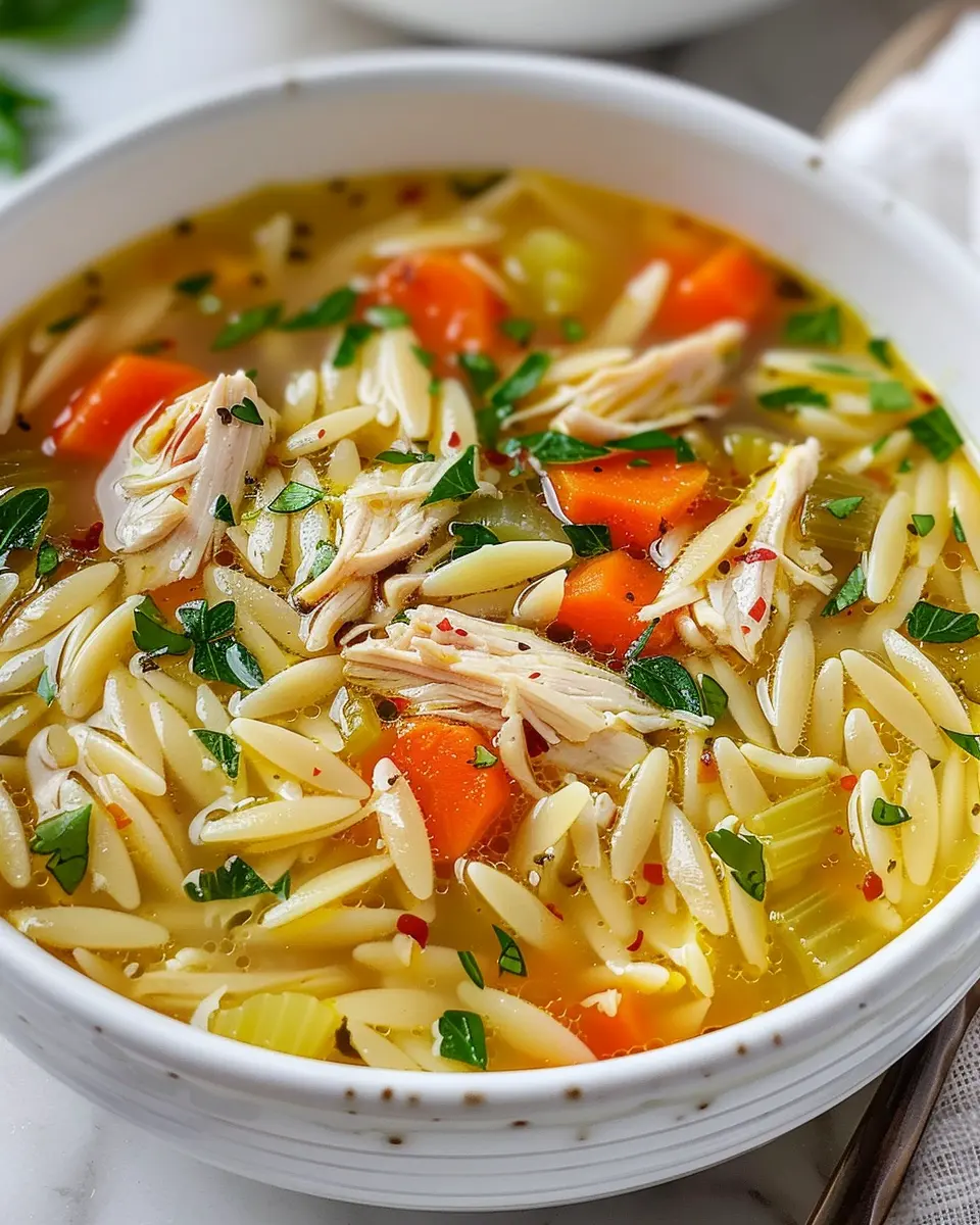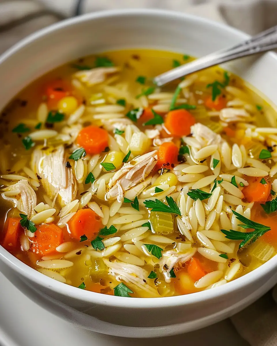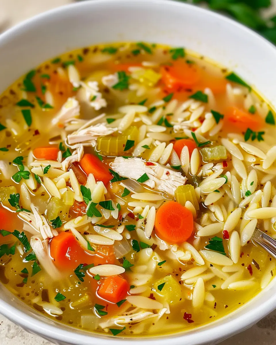 PrintChicken and Orzo Soup with Garlic and Paprika: Comfort in a Bowl
