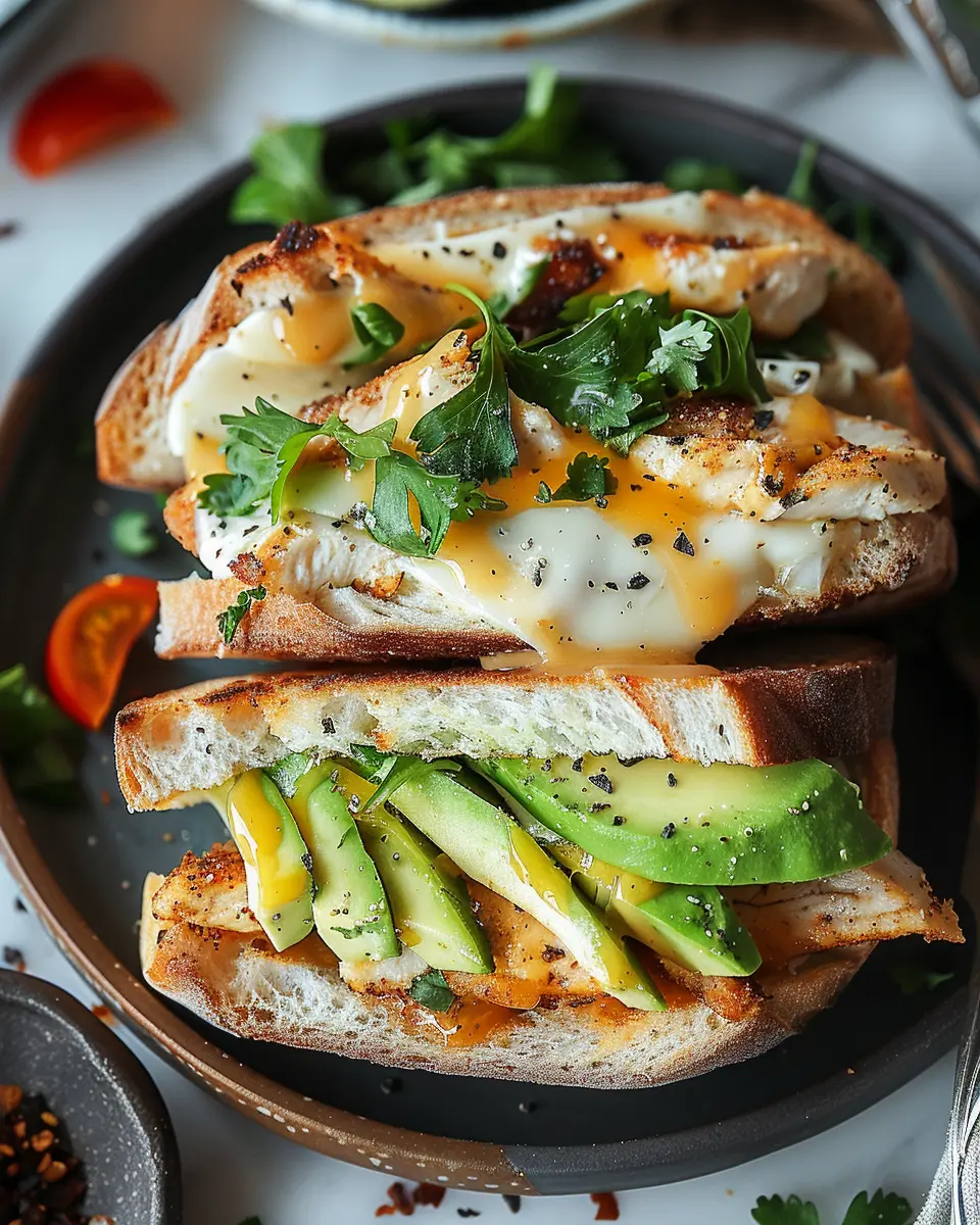 A delicious chicken avocado melt sandwich perfect for a quick meal.