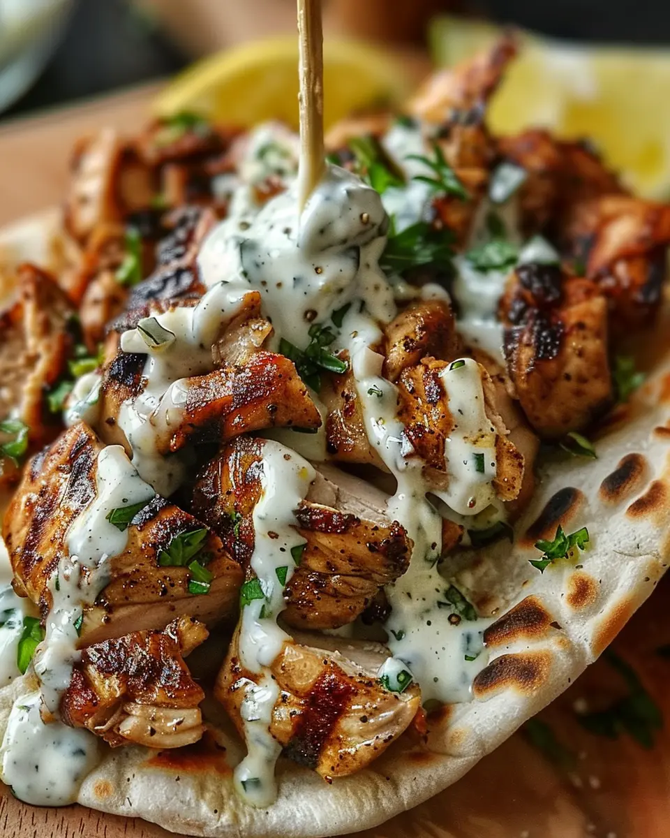 Once your chicken is done cooking, it’s time to serve! Slice the chicken into strips and layer it on warm pita or flatbreads. Drizzle with that delectable Chicken Shawarma Garlic Sauce you made, and don’t forget to add fresh veggies like tomatoes, lettuce, or cucumbers.