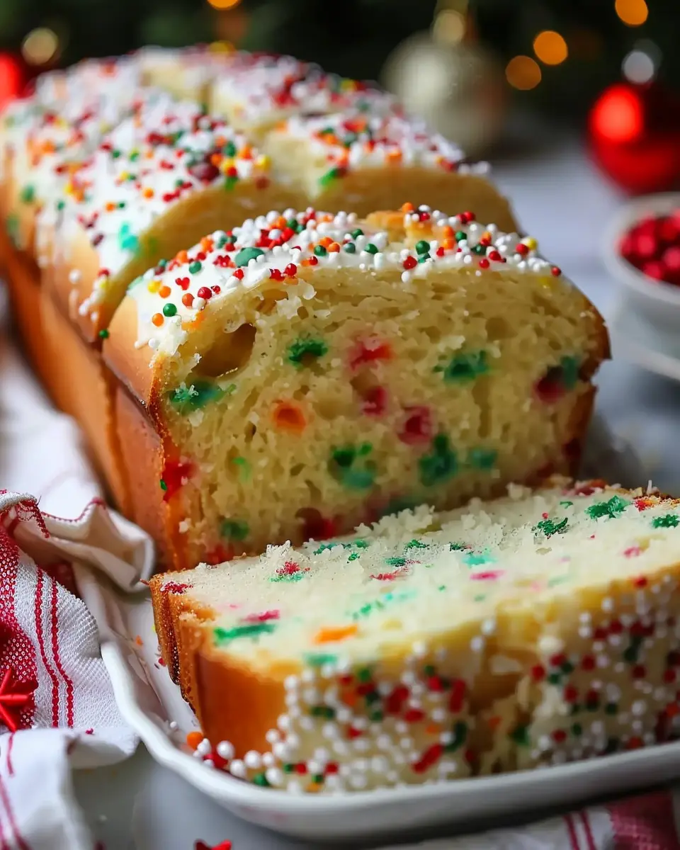 This festive bread, bursting with flavors and colorful sprinkles, encapsulates what the holiday season is all about: joy, sharing, and delicious treats. Try pairing it with a warm cup of tea or a festive drink for the ultimate experience. Don’t hesitate to explore variations or add your personal touch. Happy baking, and may your holiday be filled with love and laughter!