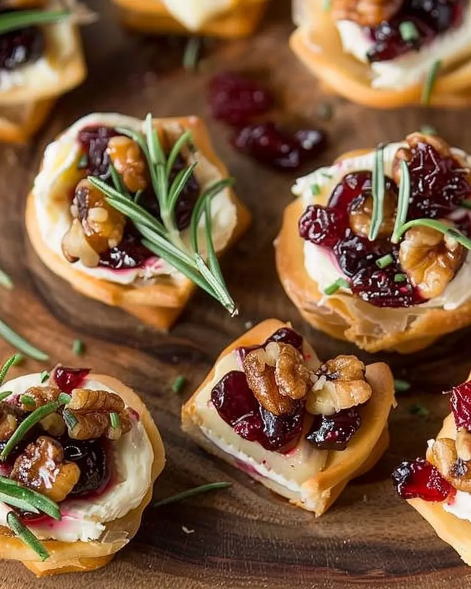If you’re a fan of textures, Nutty Cranberry Brie Bites are just what you need. The addition of chopped nuts elevates the flavor profile beautifully. Consider using:
