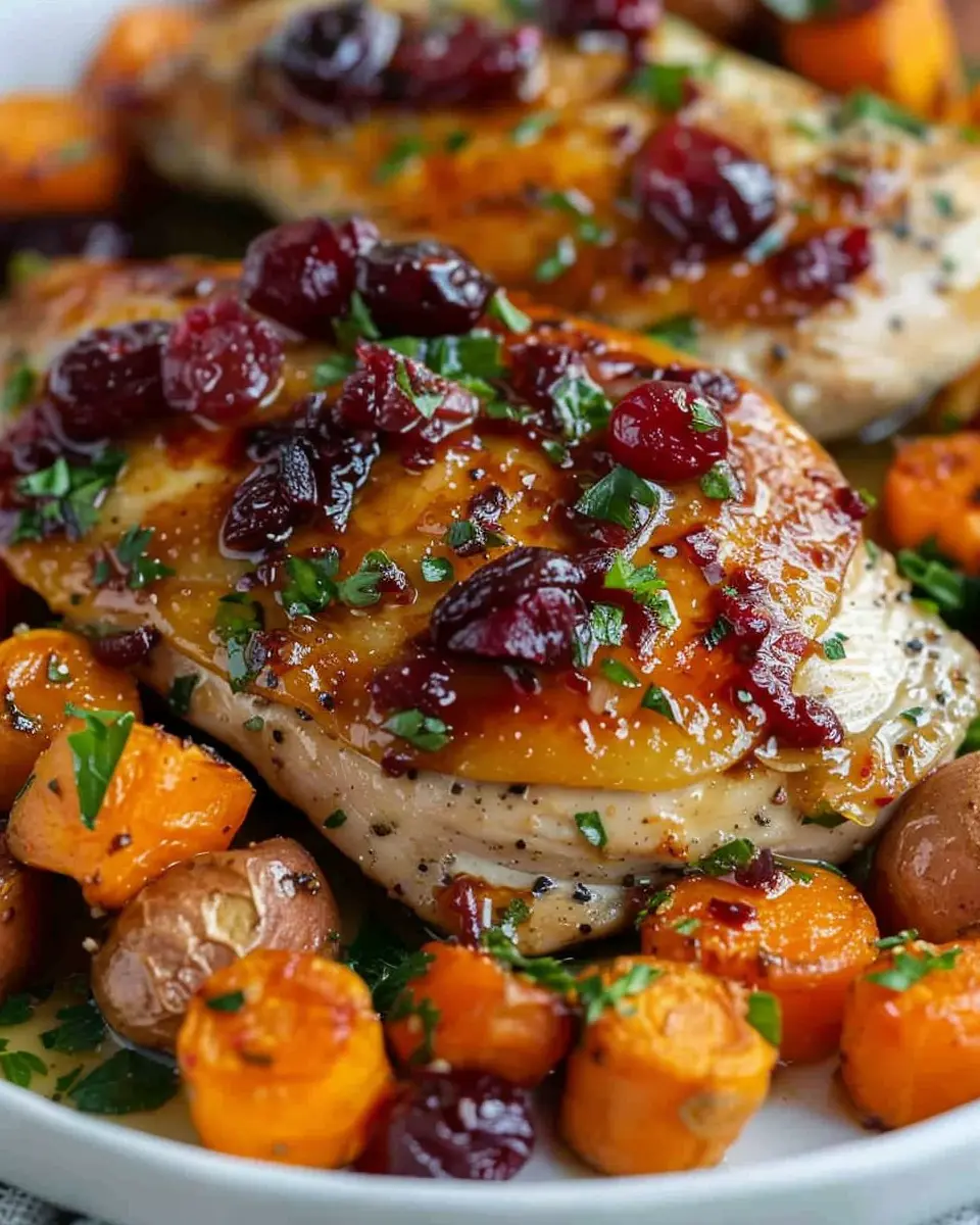 Imagine walking into your kitchen after a long day, the delicious aroma of chicken mingling with the sweet-tart scent of cranberries wafting through the air. In just under an hour, you can have a delicious meal on the table that will impress family and friends alike. The combination of the cranberry glaze with tender chicken is simply irresistible, but it’s not just about taste. This dish also packs a nutritional punch. According to the USDA, cranberries are high in antioxidants, which can support overall health. Paired with hearty carrots and sweet potatoes, you’ve got a well-rounded meal that nourishes both body and soul.
