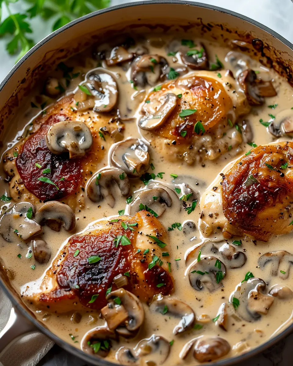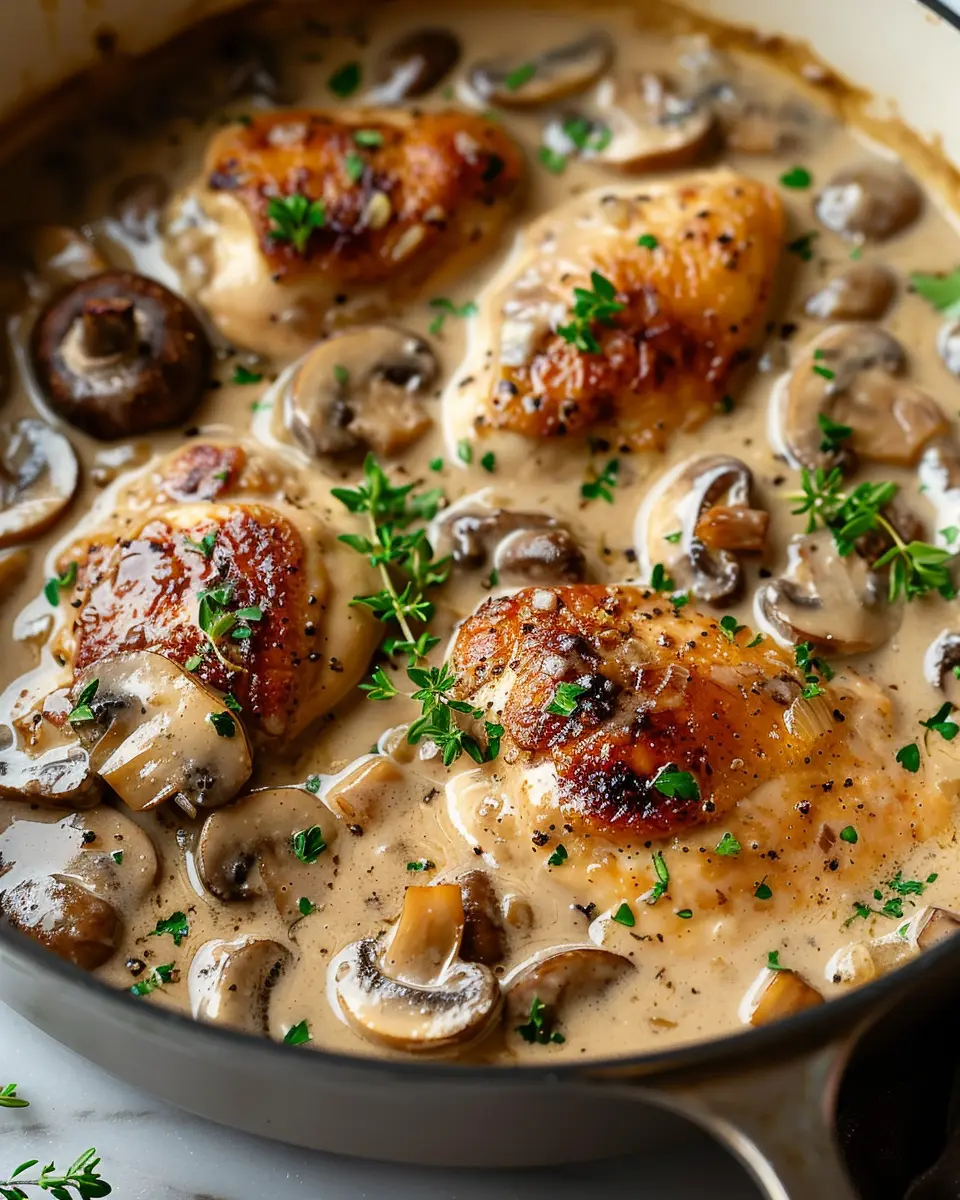 A comforting one-pan dish that brings together tender chicken, creamy mushroom sauce, and inviting flavors, perfect for weeknight dinners.
