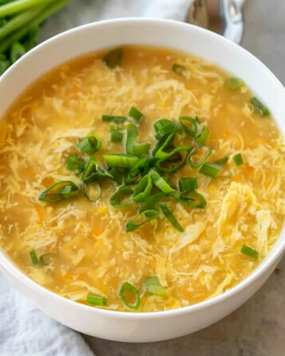 A warm and comforting egg drop soup that is quick and easy to make, perfect for cozy nights in.
