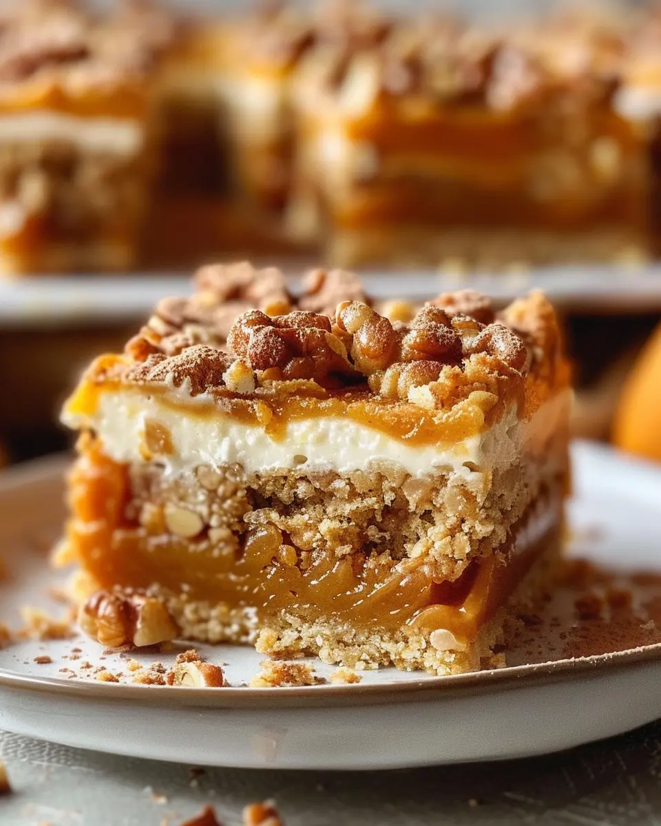For optimal freshness, let your Fall Pumpkin Bars cool completely before storage. You can keep them in an airtight container in the refrigerator for up to a week. If you want to enjoy them later, feel free to freeze them! Wrap individual bars in plastic wrap and place them in a ziplock bag. They’ll last for about three months in the freezer. Just defrost them overnight in the fridge when you’re ready to indulge!