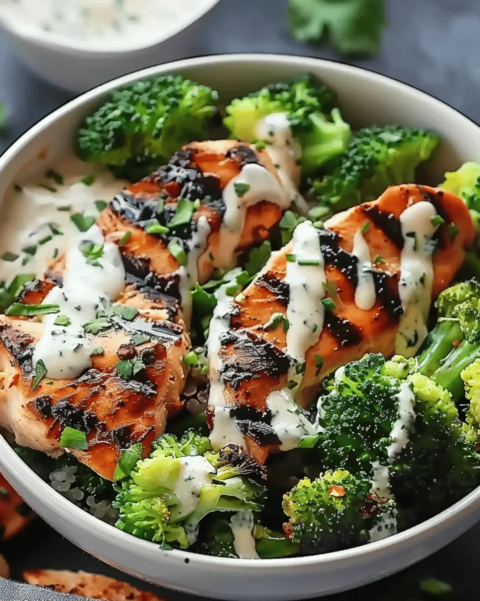 Grilled Chicken Bowls: Easy Broccoli Bowls with Creamy Garlic Sauce