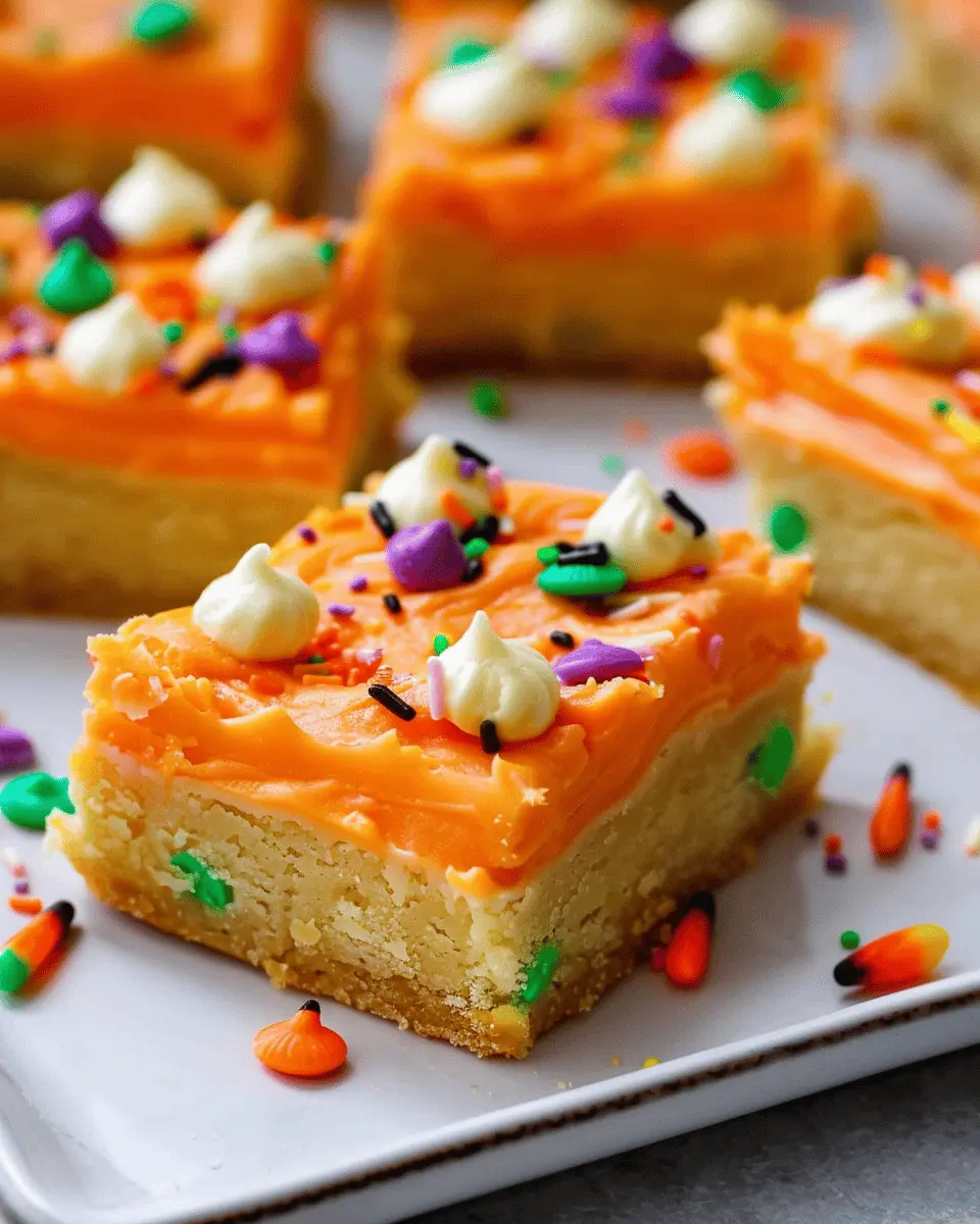 Quality matters! Use unsalted butter for balance and a blend of granulated and brown sugar to create the perfect texture. Did you know that the brown sugar adds moisture, making your bars chewy? For a fun twist, consider adding bright food coloring to your frosting — this not only enhances the visual appeal but makes the bars even more festive for Halloween.