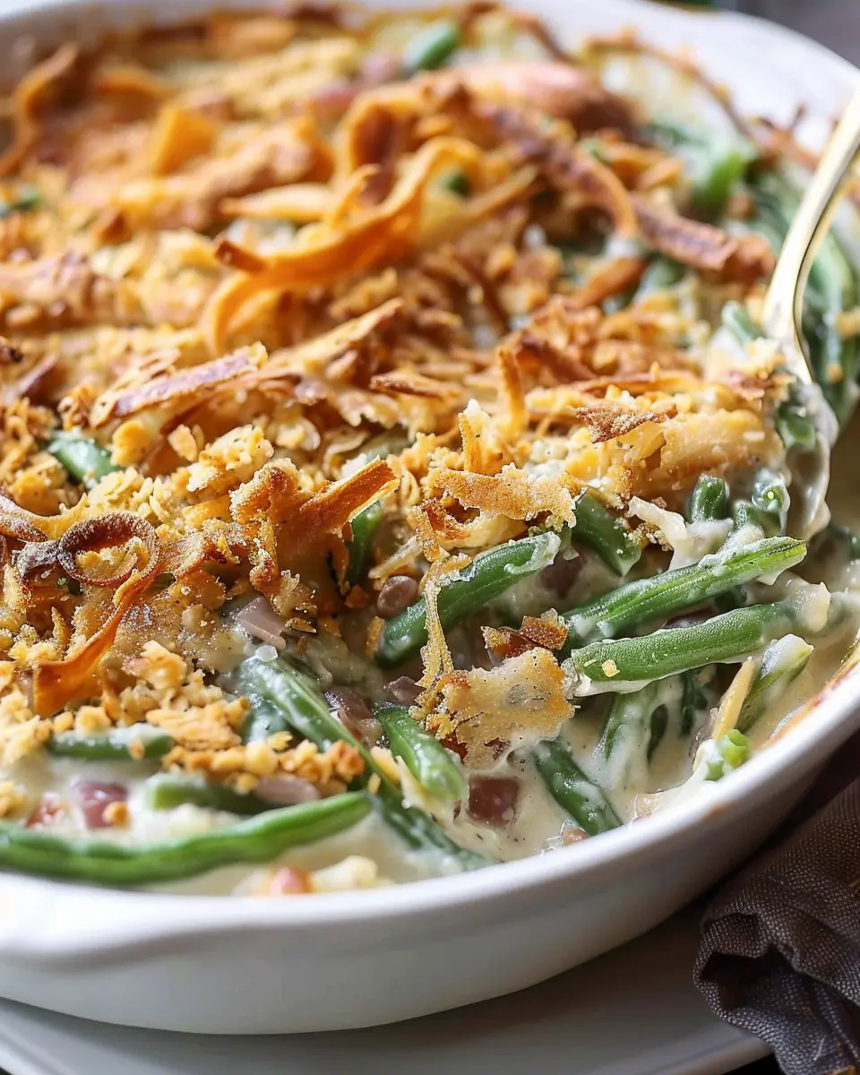 Enjoy a delicious twist on a classic favorite with this irresistible Campbells Green Bean Casserole featuring turkey bacon.