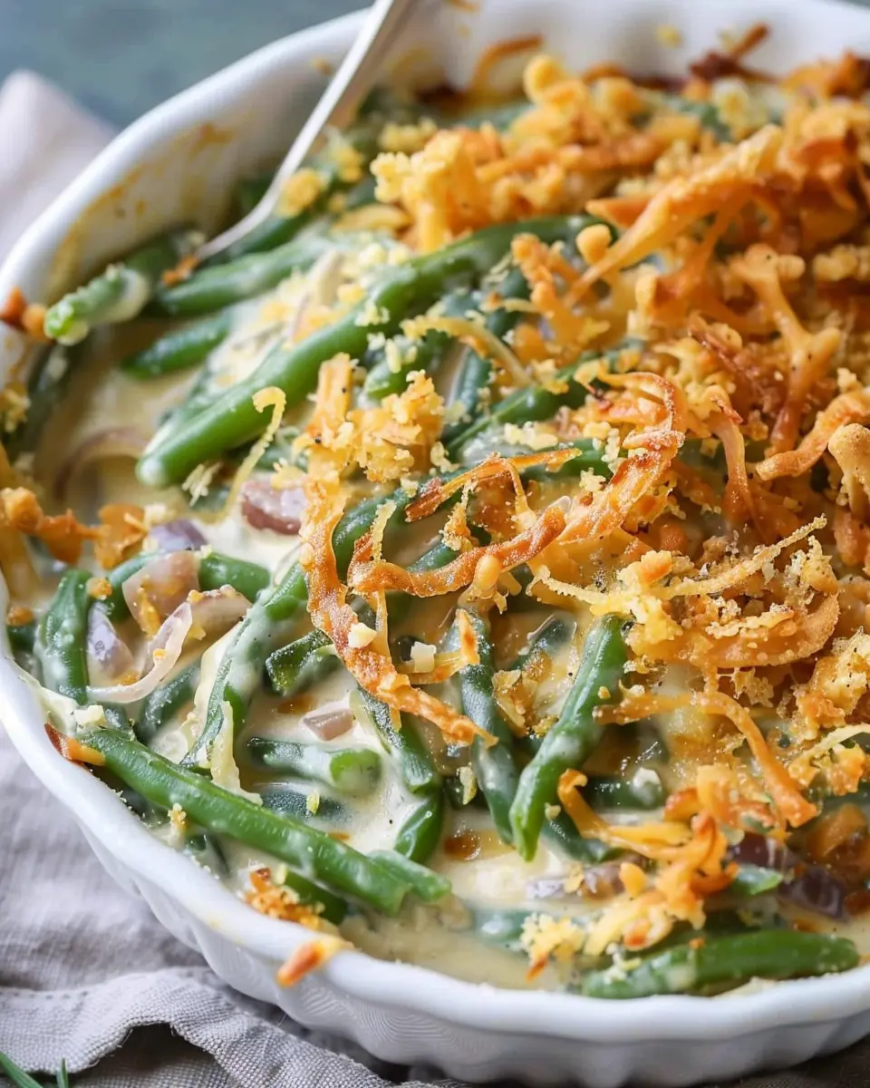 PrintIrresistible Campbells Green Bean Casserole with Turkey Bacon Delight