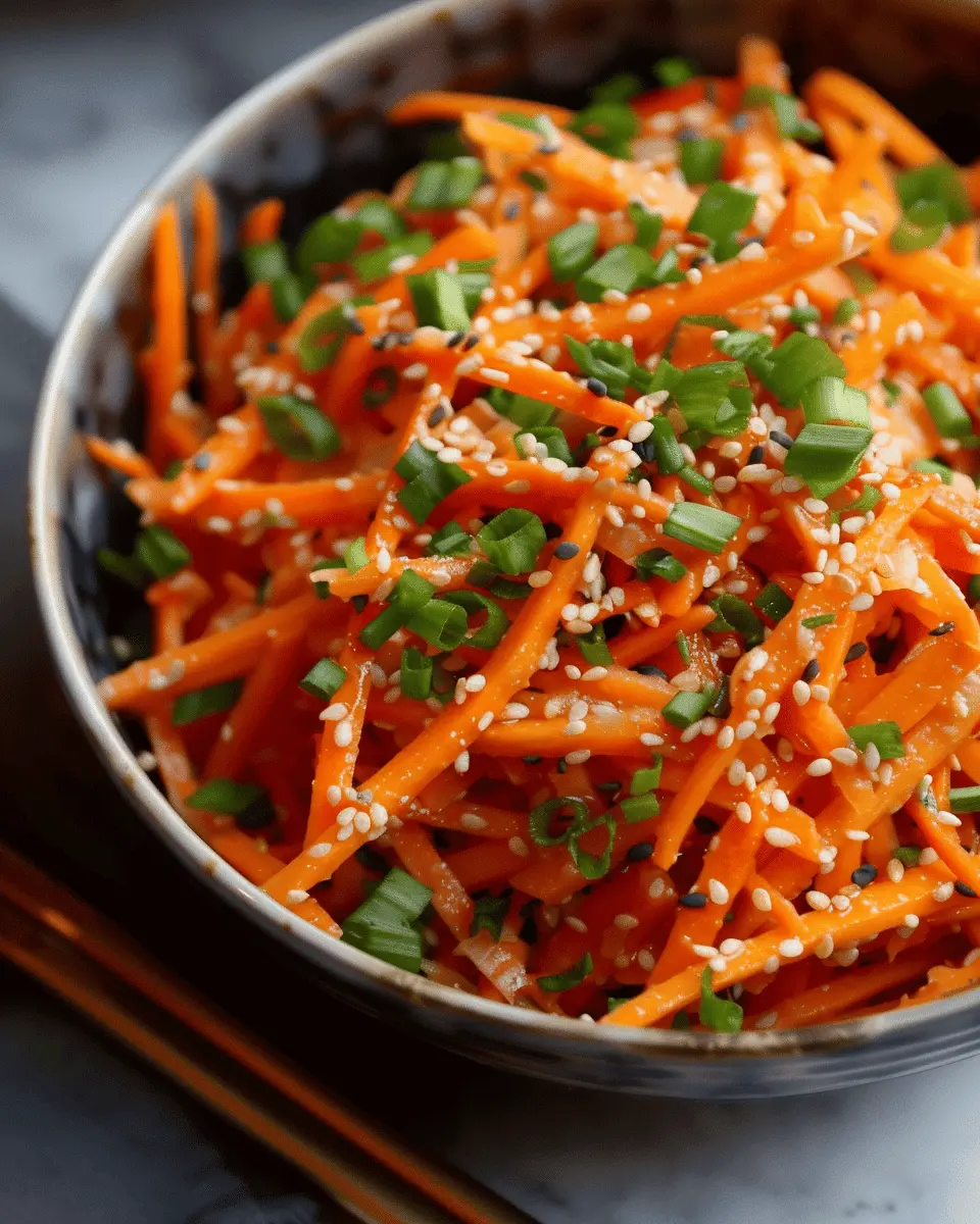 A delightful and crunchy Korean carrot salad that’s perfect for any meal.