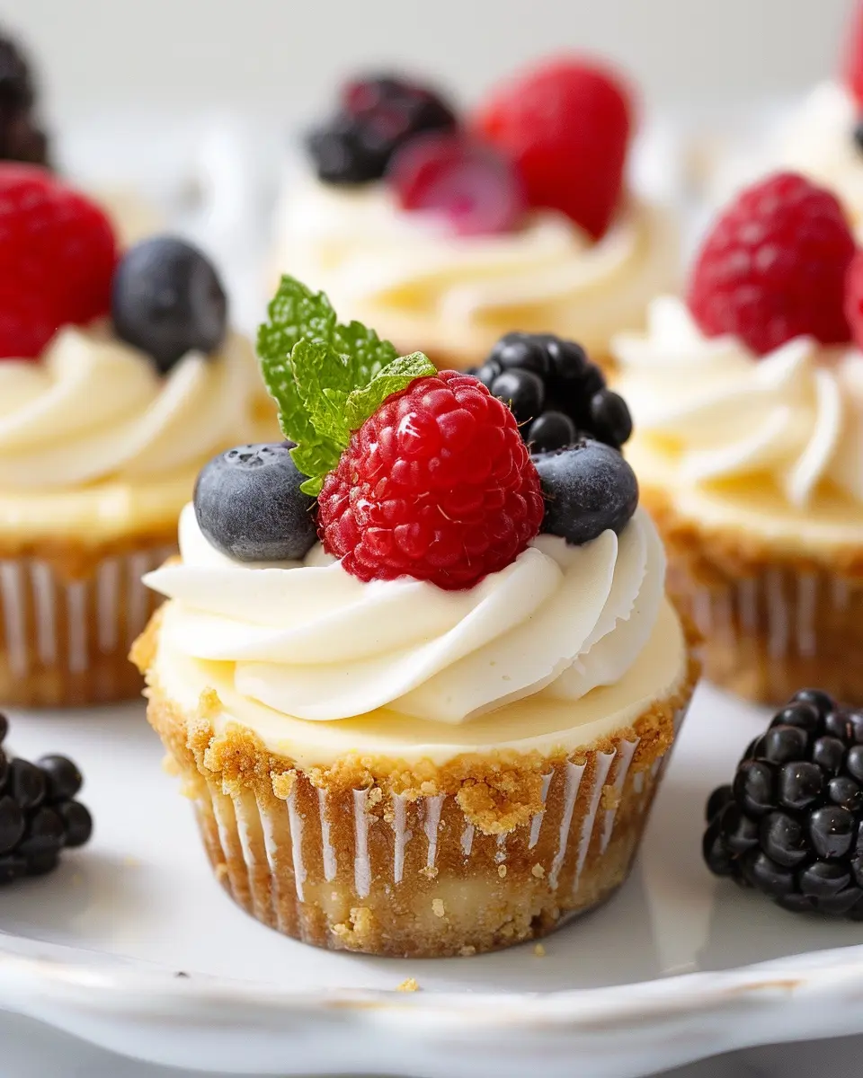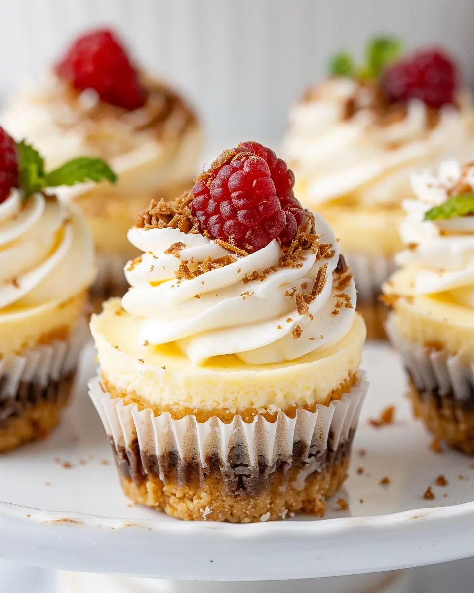 Pair your mini cheesecake cups with refreshing beverages. I recommend iced tea or flavored lemonade—fizzy drinks can also add a fun twist. If you want some crunch alongside their creaminess, why not serve them with some light snacks? Think about offering fresh fruit, nuts, or even turkey bacon bites for savory contrast. The balance of sweet and salty is always a win!