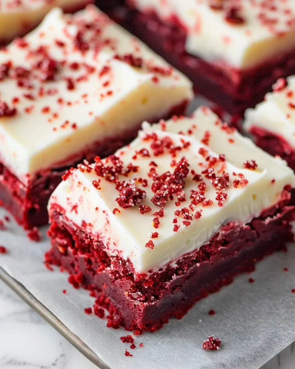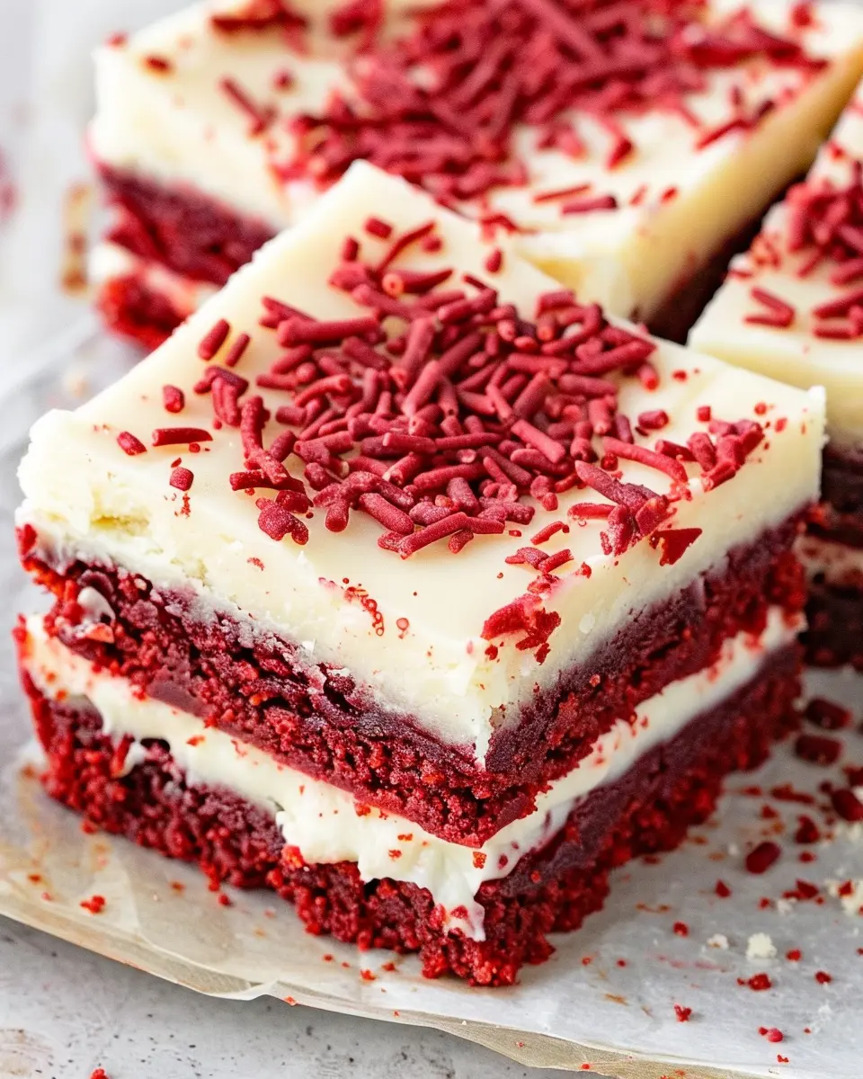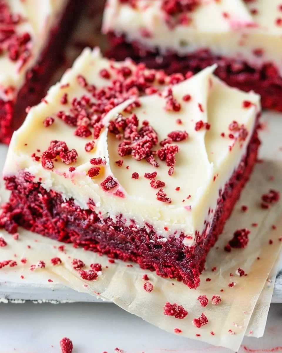 Indulge in these delectable red velvet cookie bars, perfect for any celebration!