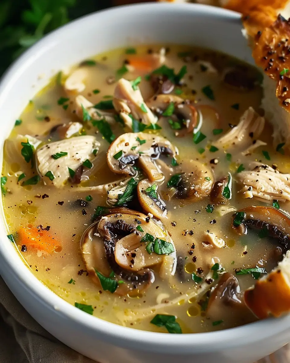 - Rich Flavor: The savory depths of mushrooms combined with tender pieces of chicken create a luxurious broth.