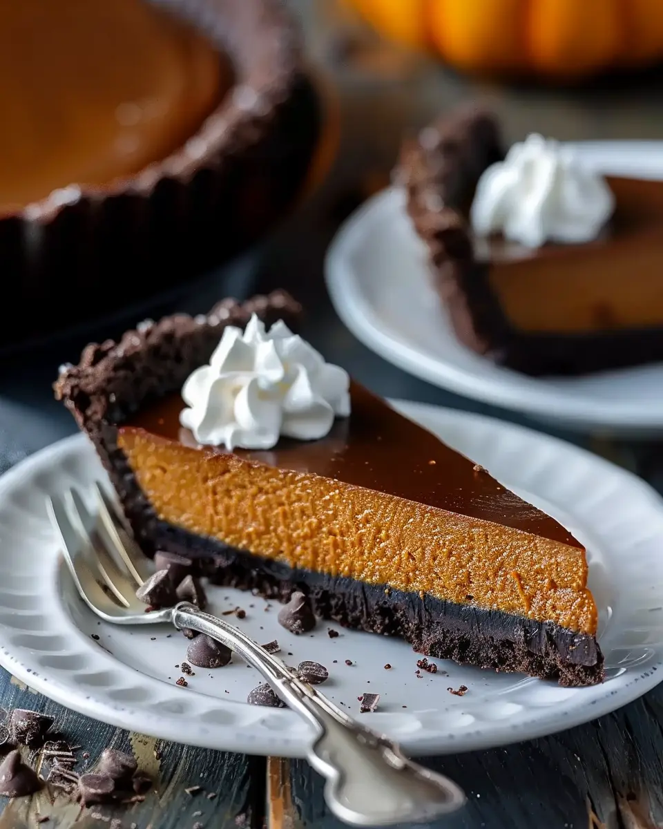 When you’re ready to serve, consider dusting the top with powdered sugar or a dollop of whipped cream for that exquisite finishing touch. Your guests will be in awe of this beautiful dessert, and the combination of chocolate and pumpkin will make their taste buds dance!