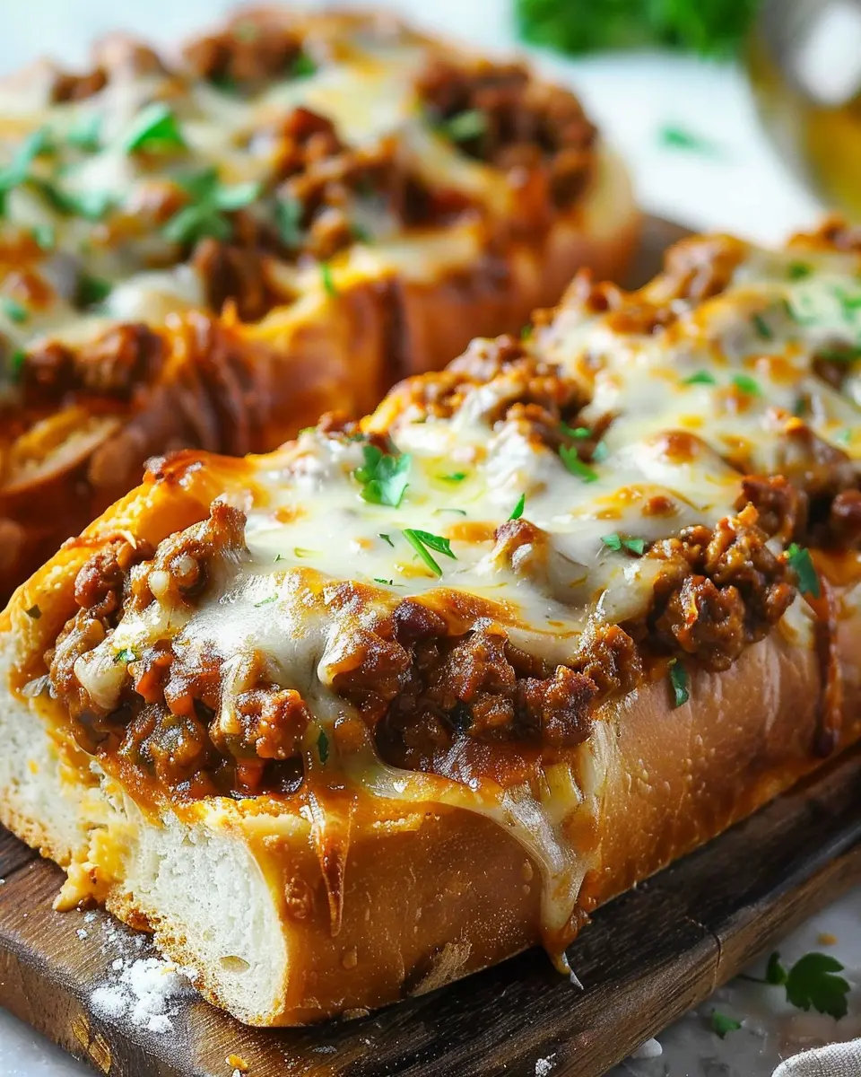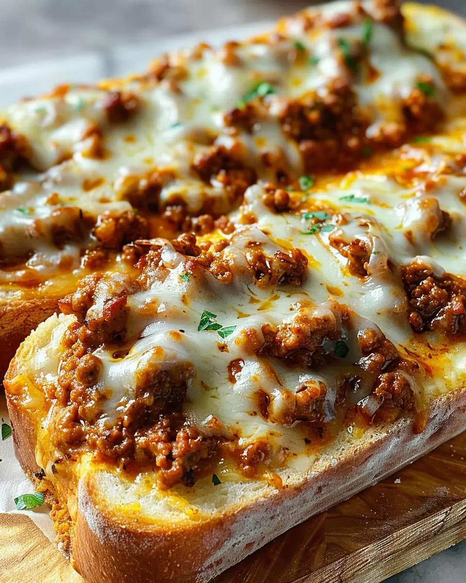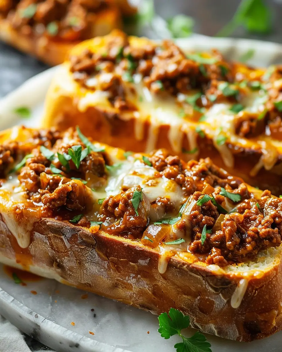 PrintSloppy Joe Garlic Bread Recipe: An Indulgent Comfort Food Mashup