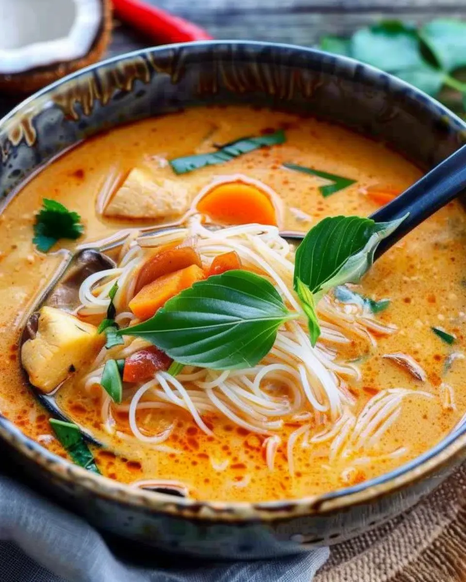 A warm and comforting bowl of Thai coconut curry soup that’s perfect for any occasion.