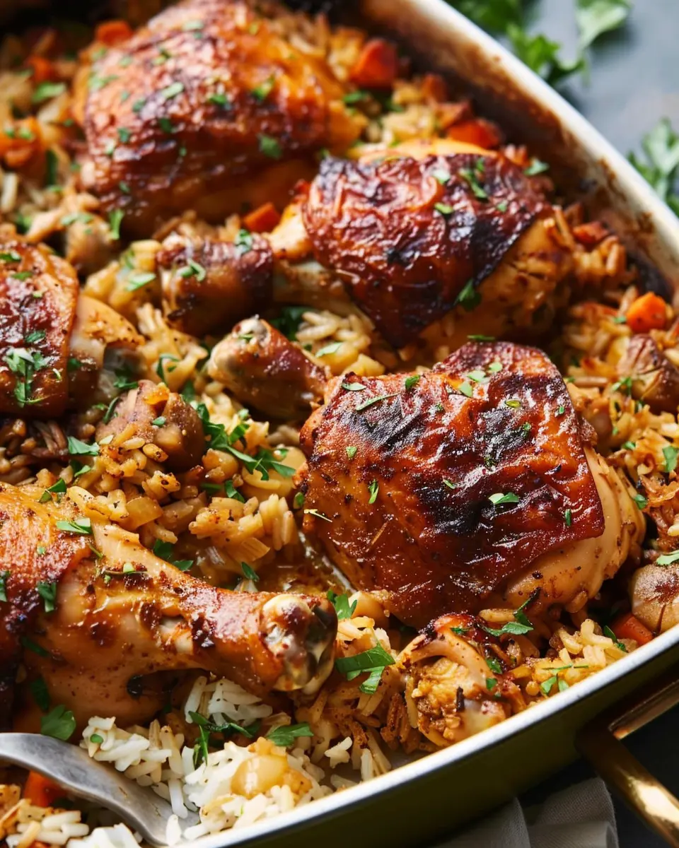 - Bake for 30-35 minutes until the rice is tender and chicken is cooked through.